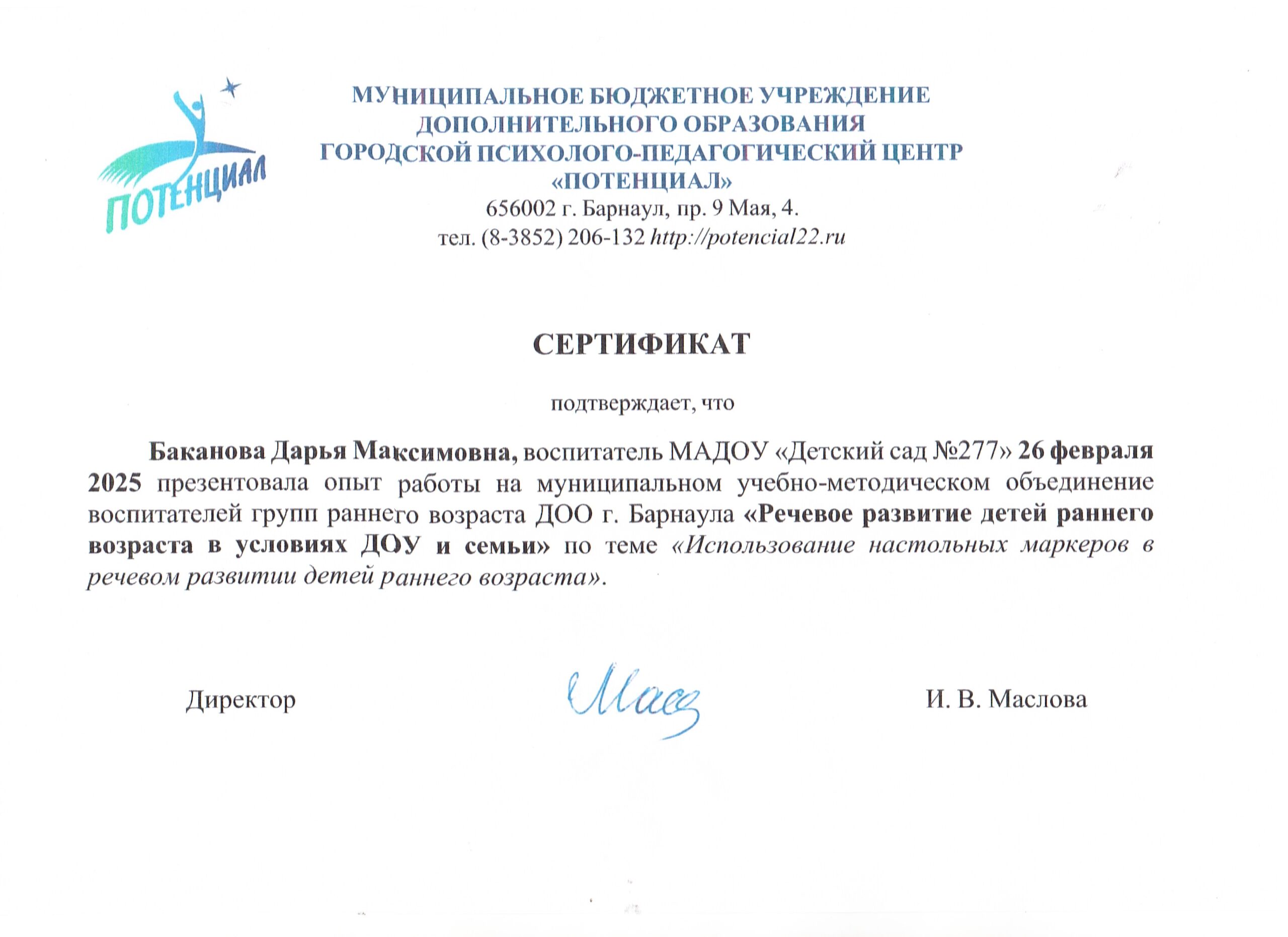 Муниципальное автономное дошкольное образовательное учреждение «Детский сад №277»